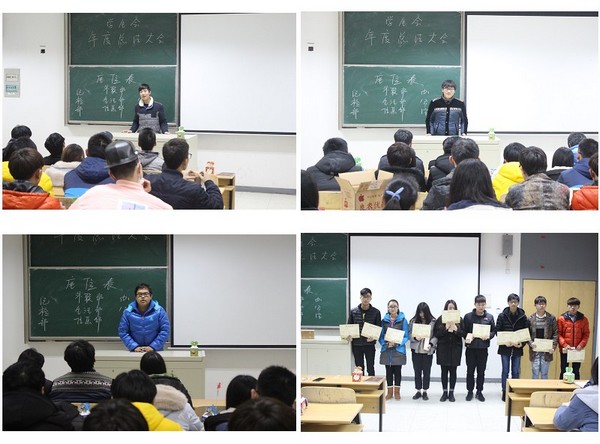 社团联合会由各社团汇报本学期工作情况,由主席对本学期工作做了总结,对表现优秀的干事进行表彰并分享工作心得。宣传处别出心裁,充分发挥了其部门的优势,结合各个部门制作了一个小短片作为开场,让在场的不少人都感慨时光流逝之快。随后就本学期优秀干事进行表彰并就提干进行了安排,最后由各部门部长和主席分别做了总结。青年志愿者协会总结会以主席总结为主,就本学期志愿服务工作进行了总结汇报,青协的第一任主席也返校参加本次总结会,他希望青协的同学们在今后工作中能更加积极,不忘加入青协的初衷。艺术团共有九个部门,这是一个多才多艺的大家庭,作为学院诸多晚会节目的承包者,艺术团成员们有更多的自豪感,但在艺术团日常工作中还存在很多问题,因此本次会议主要针对各个部门节目的不足,让各队队长上台进行反思总结。广播站是学院喉舌部门,大学生的每日生活都少不了广播,有广播就少不了广播站,相比艺术团,广播站的全体大会气氛轻松了不少,总结了学期的工作,并就期末的播音工作进行安排。学生会的全体大会除了现任主席就本学期工作做好总结,上届两位主席也都到场了,他们给学生会的优秀干事颁发了奖励并就公布了学生会第一批副部长名单。