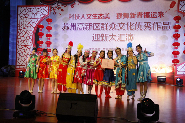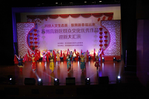 为建设科技人文生态之美,迎猴年新春,苏州高新区科技城举办了群众文化优秀作品迎新汇演,我院艺术团受邀并代表学院参与了此次活动,表演了《中华情》这一群舞。