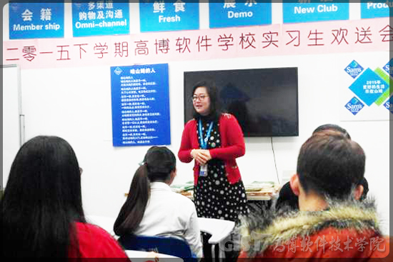 国际商务系市场营销1441,在沃尔玛山姆会员商店为期四个月的工学结合接近尾声。20151230日上午9:30时,山姆店精心为同学们准备了欢送会,参会人员有山姆店人力资源部马经理、国际商务系党总支胡启昆副书记、辅导员张志豪老师及1441班全体学生。