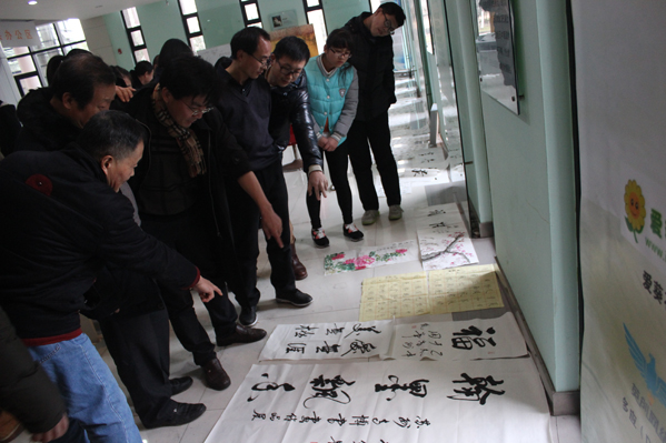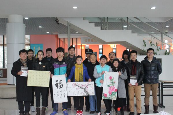 活动开始前,杨向群副院长发表了热情洋溢的动员讲话,他鼓励高博书画协会广大师生通过开展此类活动,进一步提升校园文化活动内涵和品位,展示“大学气象”和“大学气质”,共筑中国梦,传递中华情,集聚正能量。雅集过程中,基础部副主任陶德胜老师、张相轮教授、国商系辅导员王晓沪老师、学生处副处长吴歧范老师,四位老师作为江苏省教育书法家协会会员,带头即兴创作书法作品,并热情与学生切磋交流,予以鼓励指导,物业公司石勇师傅也来到现场挥毫泼墨,展示了良好的书法功底。