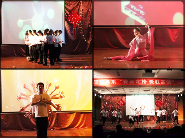 2015年12月28日晚6点30分,国际商务系在报告厅举办了“青春定格爱驻高博”元旦文艺晚会,莅临此次晚会的领导有:院长助理李建国、学生处处长王绍福和学院各级领导、老师。