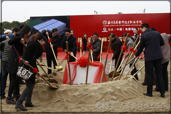 领导与嘉宾为实训基地培土奠基