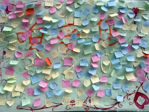 活动持续了将近一个半小时,结束时学生会成员们和钱国君老师在贴满便签的宣传栏下合影,本次活动也圆满结束。