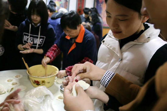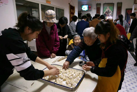 老人们脸上洋溢着笑容,热情的迎接同学们的到来。同学们非常的激动,一到敬老院就忙开了,在爷爷奶奶的指导下同学们动手为老人们包爱心饺子和馄饨。热腾腾的饺子送到老人们的手中时,这一刻温暖了老人们的内心。在短暂的休息后,同学们送上精心准备的文艺节目:一曲老歌《我的中国心》燃起来老人们的爱国之情,也表达了我们对老人们的敬爱之情。热辣的拉丁舞、幽默搞笑的小品、一曲合唱《书香年华》博得了老人们的阵阵掌声。最后为老人献上一曲夕阳红《同一首歌》为这次的表演画上了完美的句号。
