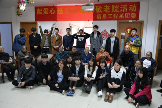 阳春三月,万物复苏,大地上的每一个角落都充满了春天的气息。三月,更是大家向雷锋英雄学习的月份。为了弘扬雷锋精神,传承助人为乐的美德,2016年3月31日上午,信息工程系团总支书记钱国君老师和系学生会的同学们一起到桃花坞敬老院,给那里的老人送去温暖和欢乐。
