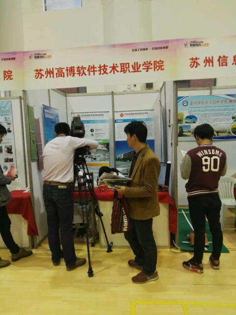 活动现场,李世明院长助理还接受了苏州市新闻媒体采访,李院长详细介绍了学院的办学特色、办学优势及2016年学院开设的30多个紧密衔接“十三五”长江经济带优先发展的新一代信息技术产业、现代服务业与先进制造业急需的新兴朝阳专业。请看活动现场传来的图片报道: