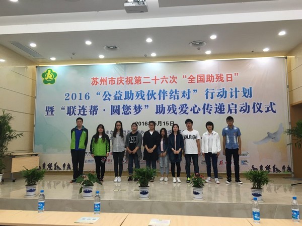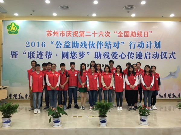 5月15日是全国助残日,我院12名志愿者前往残疾人康复中心参加“助残爱心”启动仪式。此活动由苏州市残疾人联合会发起,近50家企业60名学生志愿者参与,苏州市副市长盛蕾副市长参与启动仪式。我院长期与东渚阳光之家开展残障儿童志愿服务,此活动得到苏州市红十字会和苏州残疾人联合会的支持,成功入选博爱青春项目和“关爱孤残儿童,让爱洒满人间”项目。