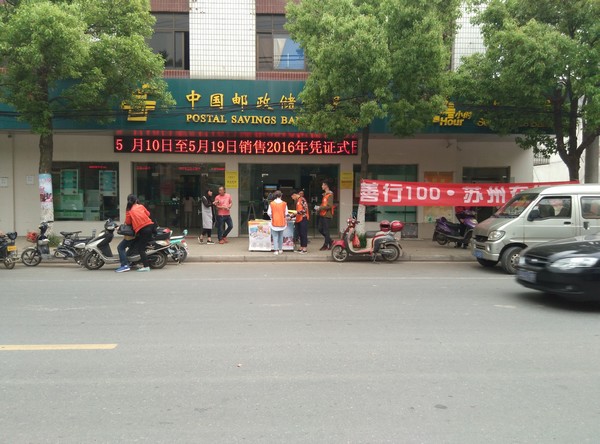 4月我院申报参加由中国扶贫基金会举办的“善行100”活动成功获批,此活动倡导志愿者开展公益宣传和筹款,通过善行传递百分百善心,汇聚全社会爱的力量,关爱贫困地区的孩子。学生志愿者在经过系统的培训后与东渚、浒关、白马涧、枫桥和新区邮政局达成合作,利用周末时间在各邮政网点宣传此项活动。经过志愿者的努力,现已有10名爱心人士被成功劝募。