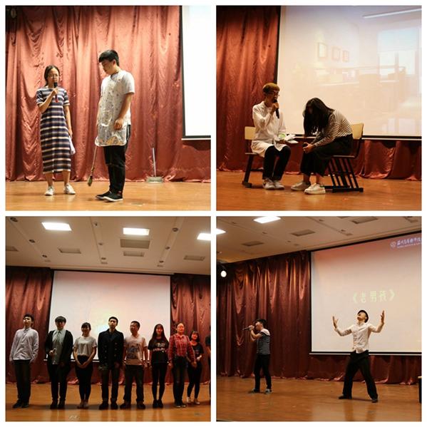 第二部分进行的是心理剧比赛,担任评委的老师有:软件工程系孙亚梅、信息工程系钱国君、建筑与艺术设计学院郭妮飞、国际商务系顾成宜、航空技术系赵雪飞。经过一个多月的精心准备,共有7部心理剧参加比赛,围绕“青春・健康”这一主题,大家探讨了当下大学生的人生观、价值观、恋爱观、婚育观。建筑与艺术设计学院带来的《成长心路》讲述的主人公在初入校园的充满激情到失去方向再到沉醉恋爱最后明白每个人要有梦想,都要为自己的未来奋斗;软件工程系选送的《用爱感化》讲述的是因为贫困而自我封闭的女生,在同学一次次主动关心和沟通下,打破隔阂的故事,让大家明白人与人之间的情感是温暖的,可以冲破阻隔;国际商务系的《二分之一的世界》讲述了大学校园中两种不同的恋爱态度,在对比中让大家感受到爱一个人不仅需要勇气,更需要责任和担当,树立正确的恋爱观很重要;大学生心理健康委员会选送的2部心理剧主要聚焦了同性恋这个少数群体,呼吁大家要正确的看待和认识同性恋,不要对这个少数群体进行攻击和鄙视;航空技术系的《面具》中,塑造了一个带着面具生活的大学生,攀比、虚荣营造出来的富二代假象终究会被戳破,摘下面具,活出真实的自己,人生才更有价值;信息工程系选送的《往事》,通过回忆青葱校园故事,告诉大家一个道理做人一定要做一个正直的人值得信赖的人。心理剧表演结束后团委还为大家献上了精彩的歌舞表演《老男孩》。最终,信息工程系凭借演员细腻出色的表演荣获一等奖,软件工程系和建筑与艺术设计学院分获二、三等奖。
