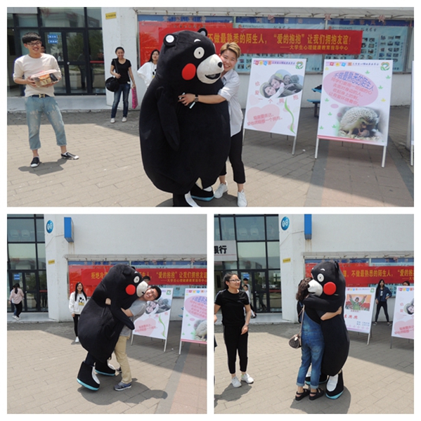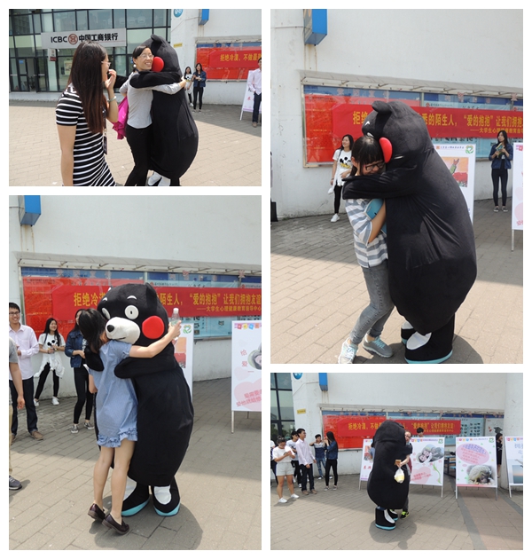 在短短一个多小时的活动中,共计200多人和我们的“熊本熊”进行了拥抱。我们由衷的希望,大家可以更好的去发展自己健康的、和谐的人际关系,在稳定的社会支持系统中快乐而积极的生活。(文/王琴)