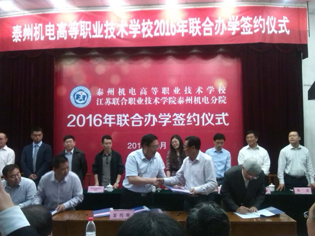5月27日上午,应泰州机电高等职业技术学校、江苏联合职业技术学院泰州机电分院邀请,我院常务副院长郭纯儒在招生就业处张纵林同志的陪同下,出席泰州机电高等职业技术学校 江苏联合职业技术学院泰州机电分院2016年联合办学签约仪式。