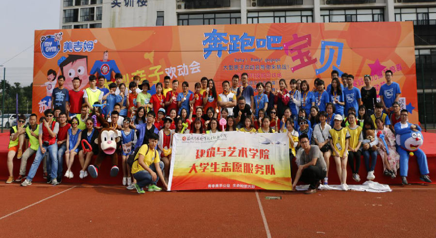 6月5日,由苏州市高新区主办,“高新区首届美吉姆大型亲子欢动会”在科技城运动场上举行。为保障活动的顺利开展,我校建筑与艺术学院团委精心挑选60名艺术学院学生志愿者参与此次活动。