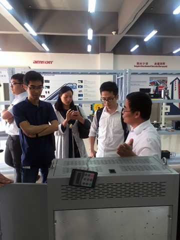 在学院领导的陪同下,李总一行先后参观了电梯工程学院的智能电梯控制实训室、电梯仿真实训室、电工电子技术实训室、PLC综合实训室等教学场地,并现场演示和操作了电梯仿真系统。