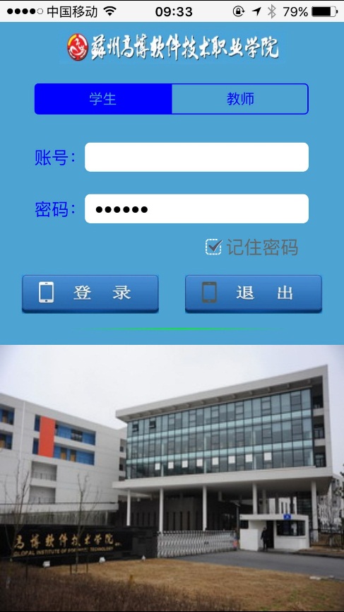 1)手机登陆模块 :输入学号或者工号、密码直接登陆到系统。第一次成功登陆后,以后可以直接登陆。