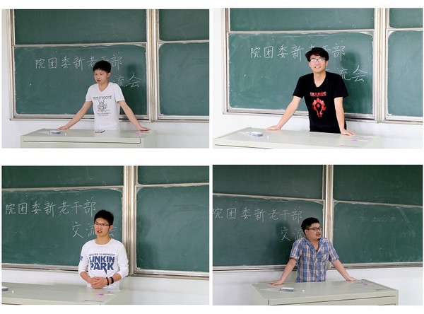 会议开始,毕业生学生干部郑学文、吴旭峰、陈浦、姜益民、吴一帅、孙奕、褚伟斌、马佳豪分别上台,他们有的分享在学生组织的工作心得、有的分享工作经验、有的分享转本和升本学习心得。各位老主席们一席语重心长的话,充满了对现任学生干部的无限期许。现任团委副书记余程健、朱永恒、秘书长姜敏也分别和大家作了经验交流,将自身的积累所得与大家分享,告诉大家在工作中细心、耐心是最重要的。最后,邹书记上台进行了总结,在欢送毕业生学生干部的同时也号召全体学生干部要向他们学习,争取将学院校园文化活动推向一个新的高度。