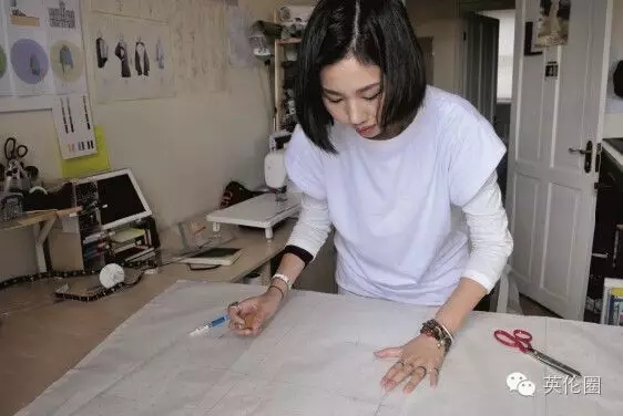 彭琳景在为自己的设计作品打版