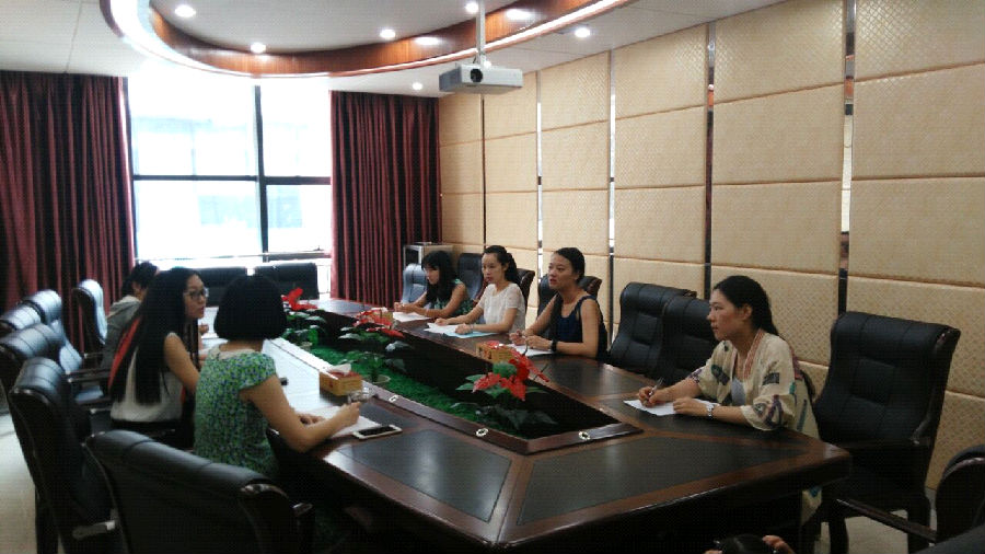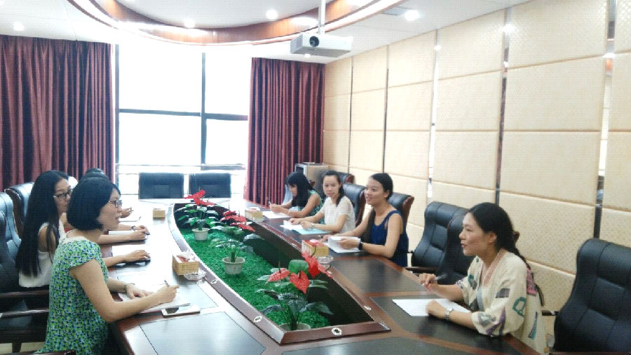 2.招标代理部负责人林玲女士(左二)对昌顺工程建设监理有限公司做简单介绍