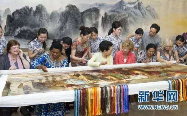 而当下,苏绣的价值正在被重新认识。苏绣的价格正在节节攀高,一幅a4纸大小的苏绣作品,上世纪90年代初售价大约几十元,2000年前后能卖到三、四百元。而到了现在,没有一千元休想拿下来。2012年5月华辰春拍,现代苏绣作品《百骏图》以166.75万元成交,价格之高令人咋舌。也正是在此次拍卖后,中国收藏界便流行起了一句话,叫做“藏金不如藏绣”。李克强曾在东亚合作领导人系列会议后,向属马的澳大利亚总理特特恩布尔赠送一幅苏绣骏马图。不仅如此,第一夫人彭麻麻也曾在南京博物院观看非物质文化遗产展示时,坐在尚未完工的苏绣作品《丝绸之路》旁,在“非遗”传承人苏州绣娘姚建萍的指导下尝试刺绣。并称赞姚建萍的《中国梦*花韵系列》是把现代手法融入到传统题材中,有非常好的艺术表现力,很美。同时对姚建萍创作的国礼作品《木槿花开》印象深刻,连声说谢谢你,非常感谢。