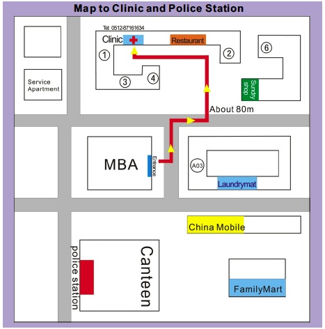 There is a policestation right next to WenXing Plaza. If students need police assistance toresolve any issue, there is a on-duty team available 7 * 24. For the exactlocation, please see the above map