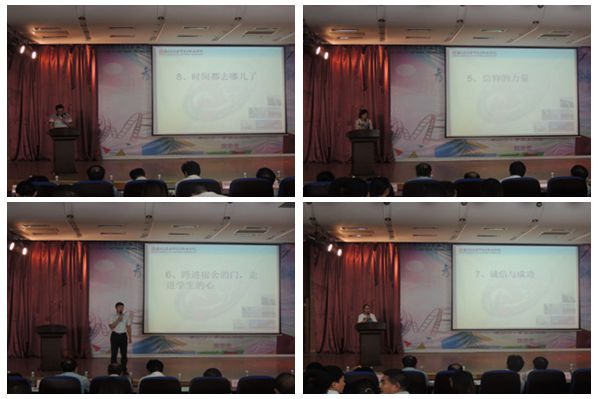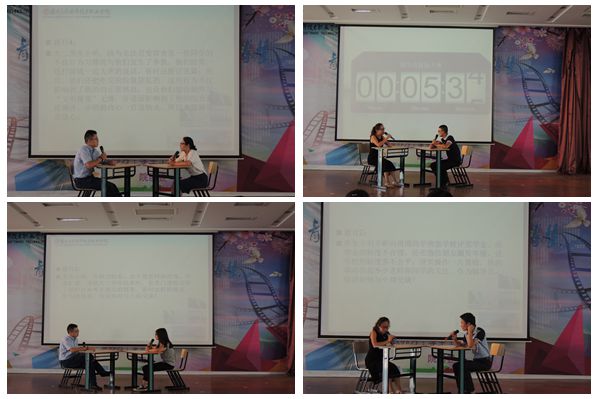 本次职业技能大赛是由笔试、谈心谈话和主题演讲三个环节组成。笔试于27日下午以闭卷考试、密封流水阅卷的形式进行。28日上午进行谈心谈话,下午进行主题演讲。谈心谈话是以情景再现的方式,模拟学生管理工作中的具体情形,由选手和助演嘉宾共同完成。在比赛中,辅导员们各显其能,面对学生提出的不同问题和困难都能够从容应对,有理有情,处理得当,展示了熟练的业务能力和高超的管理水平。在主题演讲环节,各位辅导员结合平时工作诠释了自己对题目的理解,也巧妙联系热点话题,倾述了工作中的各种感受,显示出他们对工作的强烈使命感,出色的现场发挥引起观众们阵阵欢呼和掌声,将比赛掀起一个个高潮。