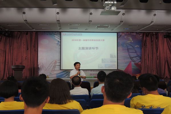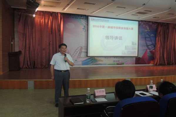学院王兆明院长发表讲话,他对大赛的举办表示祝贺,认为比赛展示了我院辅导员良好的技能水平和精神风貌。对辅导员的努力和成绩表示肯定,希望大家通过比赛,互勉互励,分享参赛心得,不断总结工作,提高工作水平,并希望大家在开学以后继续保持这种工作的热情和激情,使学生工作不断迈上新台阶!