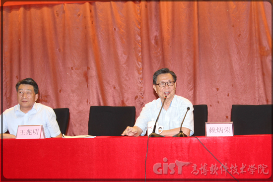学院名誉理事长、高博公司董事长赖炳荣同志充分肯定了建校以来的学院发展现状。他要求学院坚持一直以来的办学目标,并对学院今后的发展提出了3个要求,一是要提升办学层次,积极申办现代信息技术应用型本科学校;二是要加强国际化办学,提升知名度;三是要因材施教,从知识体系出发,从现在学生的实际出发,培养社会所需的多样化人才。