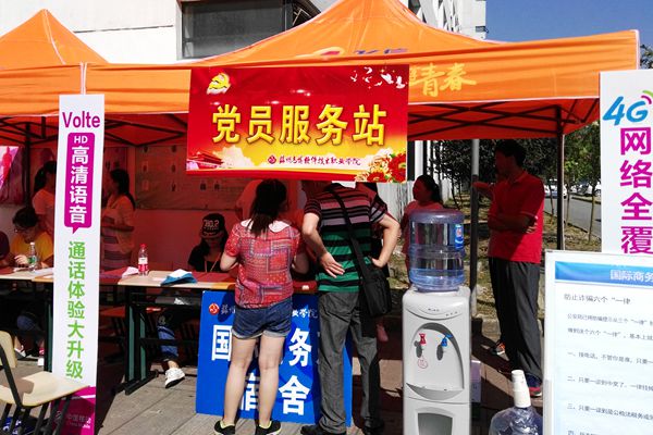 9月3日为苏州高博软件技术职业学院2016级新生报到日,校园随处可见志愿者对新生的热情服务,有一道风景线尤为引人注目,学院党委设立多处党员服务站,动员广大教师学生党员投入迎新当中,用热情、周到、贴心的服务展现党员风采,成为“两学一做”学习教育活动的带头践行者。