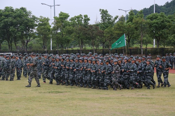 9月11日,16级新生军训已经进行了4天。阴沉下雨的天气为同学们的训练带来了小麻烦,但新生们满腔热血,以最好的精神面貌参加各个项目的训练中。