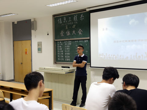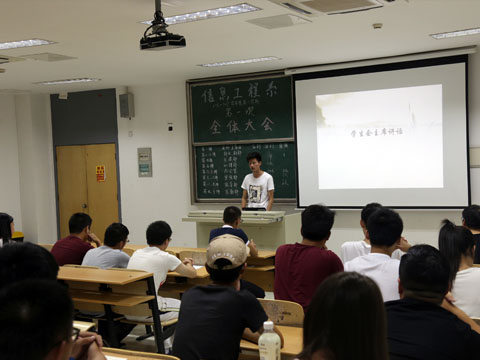 9月26日晚8点,信息工程学院学生会在教学楼1-213教室召开本学期第一次全体大会。与会人员有团总支书记钱国君老师和学生会全体成员,大会由副主席焦剑主持。