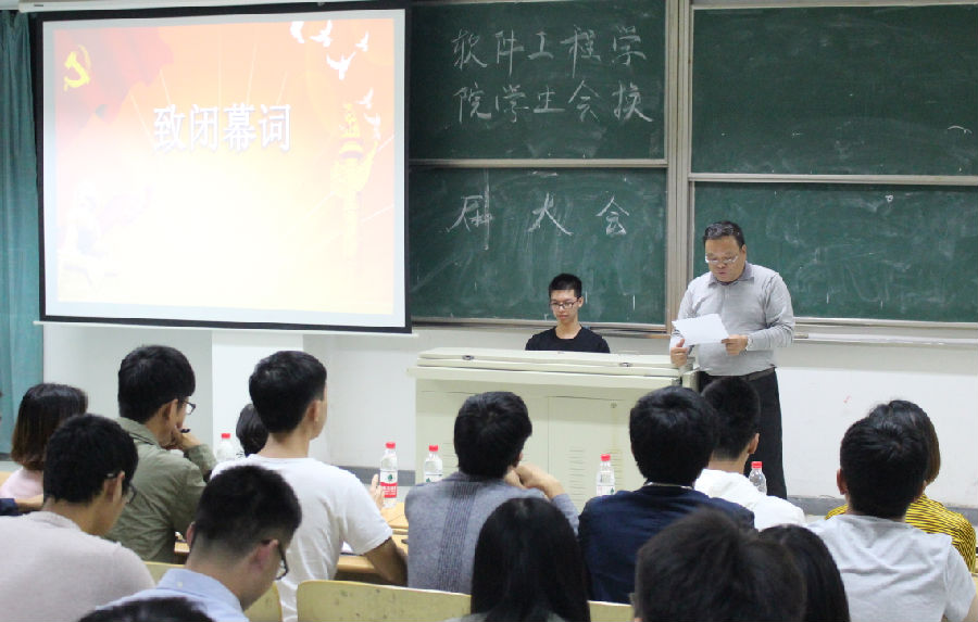 2016年10月12日,软件工程学院团委学生会换届选举大会在教学楼515教室隆重举行。到会领导有软件工程学院副院长吴建平老师,软件工程学院党总支副书记施泽群老师,以及学院各位辅导员老师等。