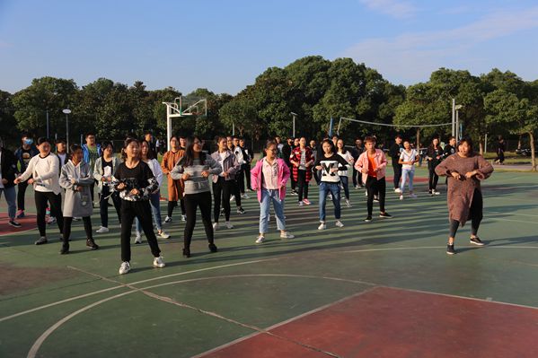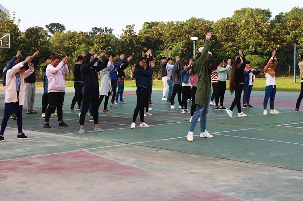 为全面提高学生身体素质,增进学生身心健康,培养学生的集体主义精神、团队意识及协作意识、增强凝聚力,激发学生学习与锻炼的激情,我院于10月11日开展了国际商务学院的特色早操活动,早七点,我院团委邹艳星书记以及袁晖老师在国际商务学院副书记胡启昆、王鑫辅导员的协助下,带领艺术团的同学在篮球场开始了本次活动。