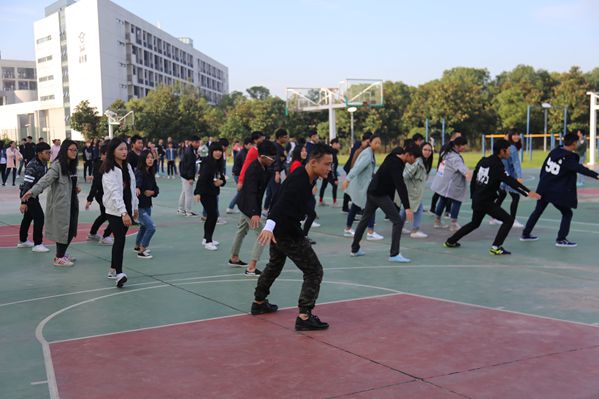 大家都与《歌舞青春》歌曲为伴,舞姿娴熟,节奏感强,俨然成为校园一道亮丽的风景线。活动的开展既锻炼了学生身体,又愉悦身心,是校园里一种新型又时尚的运动。与初升的朝阳为伴,共同挥洒自己的激情,当秋风轻柔地托起一片片树叶的时候;当太阳把它金色的光辉悄然披在一棵棵俊俏的树上的时候;当美丽的花瓣在空中悠悠地打几个卷儿,再轻轻落地的时候,我们正幸福地享受着烂漫的校园生活。