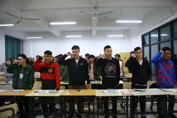 同学们在宣誓书上签字