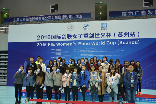 本次活动主要服务于2016年国际剑联女子重剑世界杯(苏州站)。我校志愿者每天于八点到馆内进行服务,值得一提的是组委会特意安排我校的两名志愿者服务于国际性领导人。