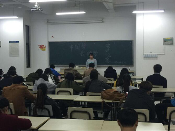为弘扬爱国主义精神、唱响时代主旋律,11月16日晚六点半在421教室,国际商务学院举行了“中国梦 我的梦”主题演讲比赛,学生处袁辉老师、国际商务学院团总支书记张志豪和其他辅导员以及学生会干部参与了活动。