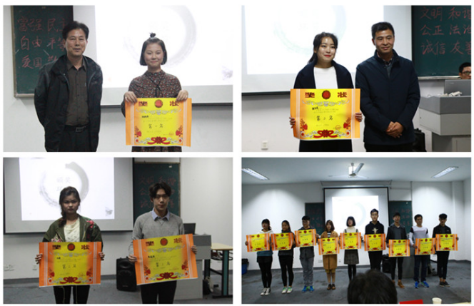 本次比赛以“中国梦・我的梦”为主题,经过初赛、复赛两轮选拔,共有10组选手晋级决赛。比赛过程中,选手们或激情澎湃的赞美祖国,或朴实真诚地阐述心中的梦想,现场掌声不断,高潮迭起,精彩纷呈。经过将近1个小时的激烈角逐,最终,1628班洪爽爽荣获第1名、1624班张永芳荣获第2名、1628班陈逸超、刘曼荣获第3名。最后艺术学院党总支副书记纪冰心为此次比赛做了精彩的点评,学生处王绍福处长对现场师生进行了语重心长的讲话。