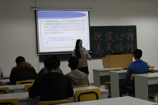 在培训活动中,陈老师首先向同学们讲解了什么是心理健康以及心理健康的标准,让大家了解心理正常和心理异常的标准,并学会正视并接纳自己的情绪。随后,老师通过ppt教同学们判断心理健康的人是什么样子的,并强调这些同学不只是名义上的心理委员,心理委员可以协助心理工作站的老师深入了解班级同学的心理状况,对班里有心理问题的同学及时发现,及时帮助,及时辅导。遇到突发事件可以在第一时间与老师取得联系并进行处理,随后,老师还告诉大家要增强自己的人格魅力,拥有自信,学会对待失败。最后,介绍了班级心理晴雨表的收发工作。