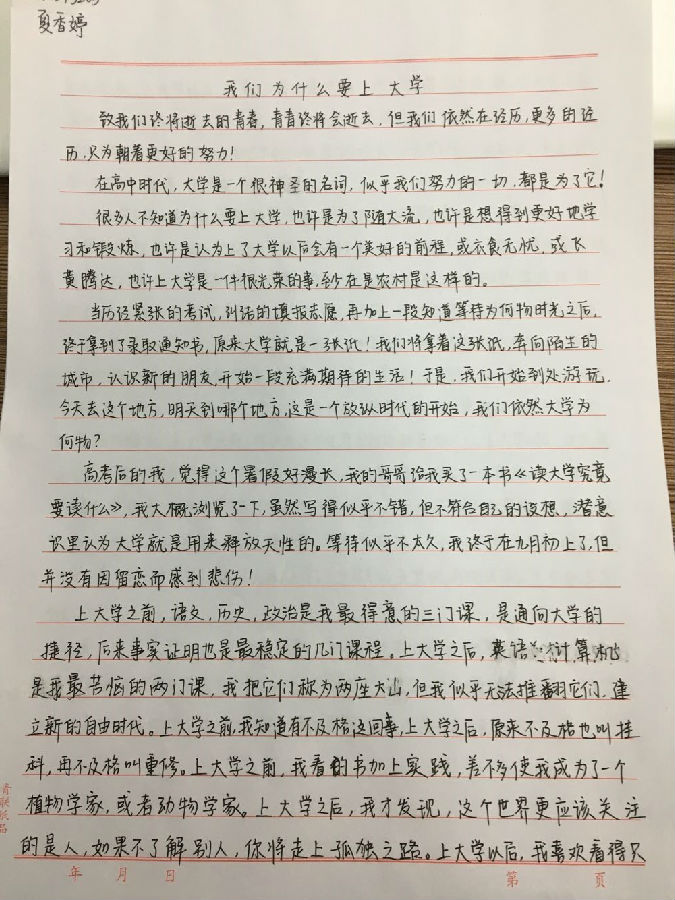 第三步,王老师给大家布置了课后作业,让大家写一篇《你为什么读大学》观后感,并写下来自己未来三年大学生活的规划。四个班级的同学都认真完成了课后作业,每个人上交了一份《你为什么读大学》观后感或者自己未来三年的大学生活规划。经过评选,1624班的陈佳佳,1625班马代芳,1631班谢瑾旭、赵晶晶,1632班夏香婷、彭艳燕,这六位同学写的观后感真实认真,字迹工整,在活动中表现突出。(艺术学院 王一迪 报道/摄影)