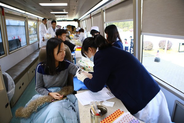活动开始后,同学们渐渐将活动现场围起,有的排队在青年志愿者的指导下填写着献血表格,有的在周围向志愿者询问在什么情况下能献血,什么情况下不能献血,在听到未满18周岁不能献血时,有的同学充满遗憾的离开了活动现场。有些同学看起来十分紧张,但他们都勇敢的去献了血。值得一提的是今年6月刚毕业的吴旭峰同学在听到献血消息后特地从单位赶回学校参加无偿献血活动,现在他累计献血量已达到1600ml。到下午四点,血站带来的血袋已经全部用完,共有127名同学成功献血,学院也为他们发放了相应的营养补贴。有部分学生还想参加献血活动,志愿者们告知他们可以选择改日到血站日常献血点参加无偿献血活动。