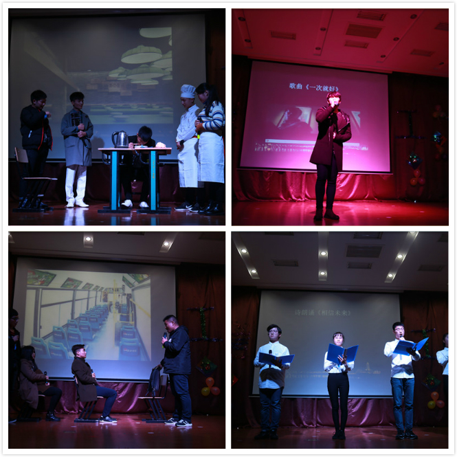 首先是由两位洋溢着青春气息的女孩带来Beyond的一首《真的爱你》,优美轻柔的歌声让全场一下子安静下来,现场不时有同学在轻轻跟着和唱。接下来歌伴舞蹈《青花瓷》则将同学们带入了清秀淡雅的江南水乡,给人以美的享受。小品《吃面》,通过风趣幽默的表演,传递出做人要讲诚信的积极意义;另一小品《公交车上》,则弘扬了中华民族的优良传统――尊老爱幼。独唱《一次就好》表达了顾鑫同学对爱情的美好向往,全场手机闪光灯摇曳,温馨而浪漫;劲爆的街舞《Let's dancing》则将全场气氛带向高潮,给观众以酷炫的视觉享受,很多观众大呼过瘾。最后,在大合唱《爱因为在心中》的优美歌声中,晚会进入了尾声,圆满收官。