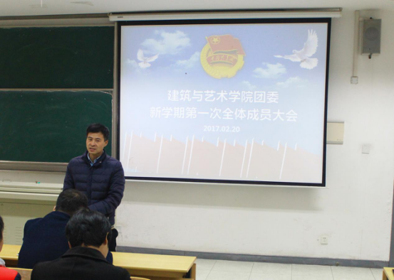 2017年2月20日晚,建筑与艺术学院团委在1-211教室召开了新学期学生干部大会。建筑与艺术学院党总支纪冰心副书记、全体辅导员老师以及120名学生干部参加了会议,会议由艺术学院团委书记胡赛老师主持。