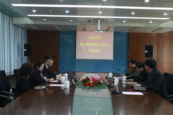 2017年3月9日上午,苏州教育投资有限公司办公室主任刘黎毓、 高科物业总经理林�元一行莅临学院参观了解学院教工和学生食堂的供应和经营情况。学院副院长李建国、院办主任王绍福、后勤处处长孙宝珠在实训楼会议室进行了接待和交流。