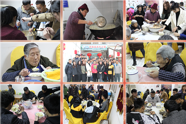 老人们非常热情的迎接同学们的到来,同学们也非常的开心,一到敬老院就忙开了,和爷爷奶奶一起动手包起爱心饺子和馄饨,大家诉说着家长里短,脸上都洋溢着幸福的笑容。当热腾腾的饺子送到老人们的手中时,老人们吃的很香,也很感动。吃完饺子,短暂的休息后,同学们送上精心准备的文艺节目,获得爷爷奶奶热烈的掌声。当同学们要离开敬老院时,老人们紧紧握着同学们的手不愿放开,希望同学们能够常来看望,陪自己说说话。