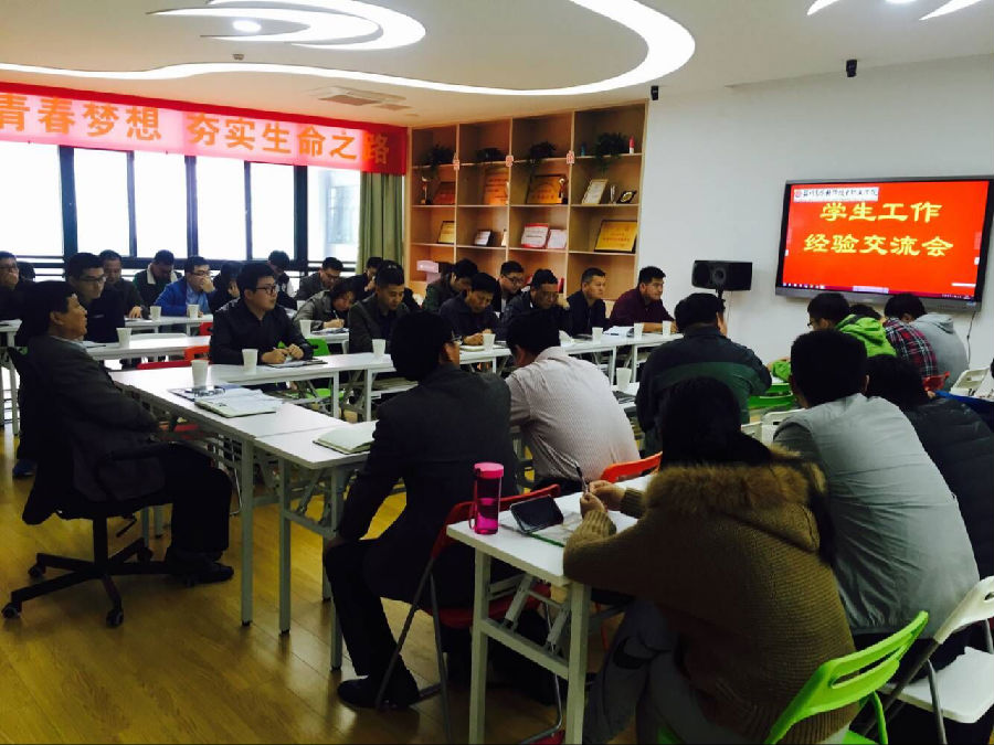 2017年4月6日下午,学院在行政楼青春健康俱乐部召开学生工作经验交流会。院长办公室王绍福主任、各二级学院党总支副书记、全体辅导员,后勤处、保卫处、学生处全体人员参加了会议,会议由李建国副院长主持。