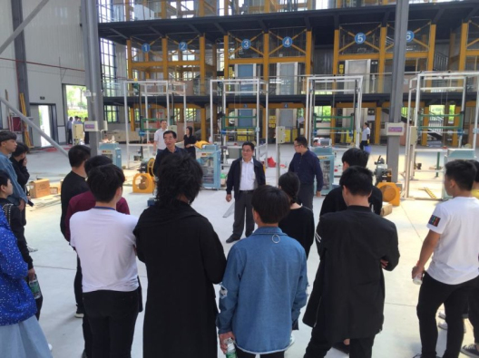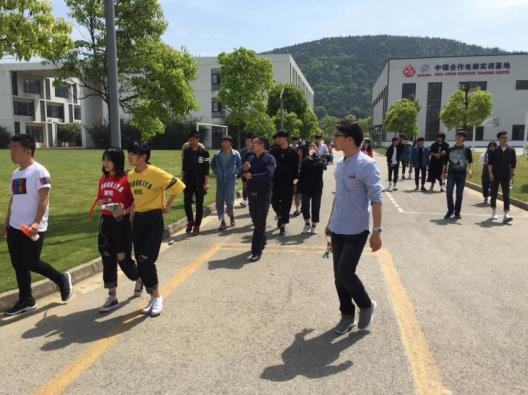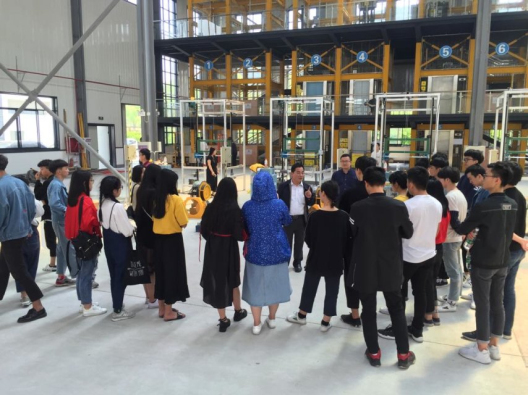 中瑞合作(苏州)高博电梯工程学院院长李志宏(中间)向学子介绍电梯实训基地建设基本情况以及2017电梯工程学院最新专业设置