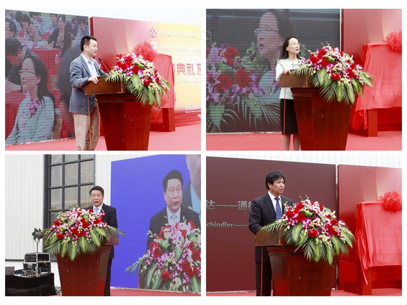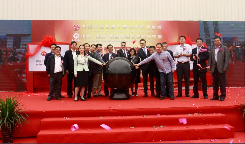 吴中集团总裁葛健、苏州市教育局副局长高国华、迅达中国区市场部副总裁徐长杏、迅达东中国区副总裁金闪伦共同为“中瑞合作电梯工程技术实训基地”和“迅达(中国)电梯有限公司员工培训基地”揭牌。