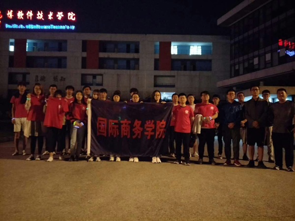晚上19:30,参与活动的同学们在一号门陆续的集合,同学们穿着统一的服装,挥舞着亮晶晶的荧光棒,对身边路过的同学们进行号召加入此次活动。20:00,参赛的同学分成若干小组,穿戴着印有国际商务学院的t恤,手持荧光棒,井然有序的开始了此次玉屏山荧光夜跑活动。沿途过程中,15名指引人员的志愿者提前分布在每个路口,在活动的进行中志愿者们及时的挥舞荧光棒和大声的提示正确路线的方向,为参加选手们护航。所有选手跑完全程后在终点参加荧光狂欢,欢快的乐曲为所有选手的奋力拼搏喝彩。