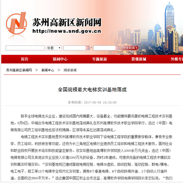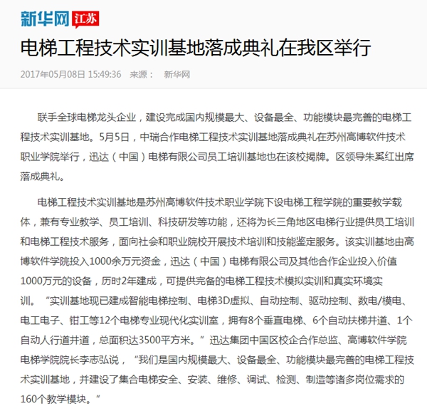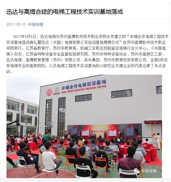 “中瑞合作电梯工程技术实训基地落成典礼”媒体报道(二)[图]