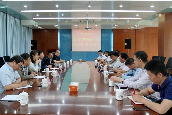 5月16日上午,淮安信息技术学院校长田敏一行来校调研考察,学院院长王兆明,副院长陈家颐,电梯学院院长、迅达校企合作总监李志弘和相关职能部门负责人在实训楼会议室接待了来宾,双方就推进人才培养方案、电梯产教融合和校企深度合作等方面工作进行了深入探讨。