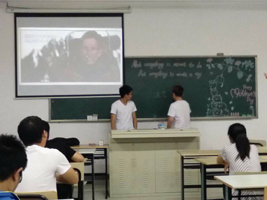 活动伊始,魏恒康播放了一段简短的影片。片中老年人,回忆自己的青春时光,不禁也让我们思考:我们的青春是怎样的,当我们老了,将怎样评价我们的青春年华?同学们各抒己见:有同学列举了自己认为青春最不可错过的十件事,有同学说最应该结交的两个朋友是图书馆和运动场,有同学说青春应该是在书本中度过的,还有同学说青春就应该参加各种各样的活动来锻炼自己。最后,魏恒康让同学们上台写出自己对于青春的印象:奋斗、图书馆、运动场、活力四射、青春痘,同学们尽情书写着青春的这本书。